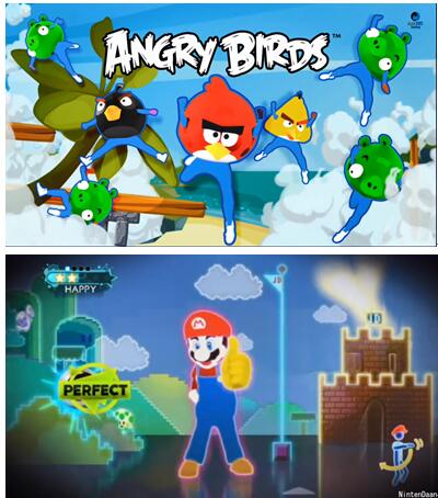 《舞力全开》游戏与超级马里奥、愤怒小鸟等知名IP合作的画面截图正是由于这款游戏的独特魅力,三星智能电视机(海外)15-16年开始可以在全球50个国家的应用商店下载该游戏;苹果公司15年底邀请《舞力全开》开发Apple TV端口,16年1月游戏正式登陆Apple TV平台,从发布至今,《舞力全开》一直保持游戏类应用畅销榜前5的位置。