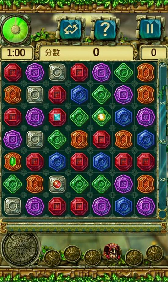 魔法图腾,强大的神秘力量不同于其他消除类游戏,在《蒙特祖玛的宝藏3》中你需要注意的是每个关卡的时限都是1分钟,所以必须在规定的时限内,达成指定的目标分数来获得神秘的金币。而每个关卡内的金币都获取之后,才能算真正完成这个关卡。