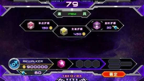 选择音符玩家选好音符之后,继续来到道具选择界面,界面中的每个道具都需要用星币购买护盾,护盾分为三种:1、单点护盾,这个护盾可以抵消玩家的一个判定丢失,丢失的判定被视为BAD判定;2、完美护盾,丢失的判定被视为PERFECT判定;3、时间增加护盾,使用这个道具玩家可以顺利通过歌曲当前的限时关卡,(一个时间护盾只对一个关卡有效)。