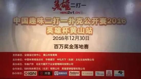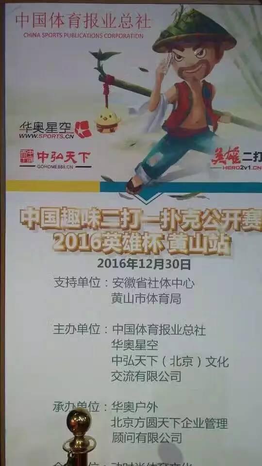 12月30日,2016中国趣味二打一扑克公开赛英雄杯(黄山站)在黄山市体育中心画上圆满句号,百万奖金尘埃落定,参赛选手乐享了本次比赛,充分体现了赛事的群众性和趣味性,为年终岁末增添喜悦成分。