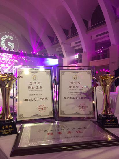 益玩游戏参与2016广东游戏产业年会2016年“金钻奖”是由广东省文化厅指导、广东省游戏产业协会主办的首届游戏产业评选活动。本届金钻奖共设置包括“最具创新力企业”、“最具成长性企业”、“最受欢迎游戏”、“最佳国产游戏”和“最具影响力”等五项大奖。秉持着“公平、公正、公开”的原则,按玩家网上投票占比30%,评委评选占比70%的比例,综合多位业内专家意见及企业相关数据指标,并在12万玩家的共同参与之中,评选出获奖企业和游戏。