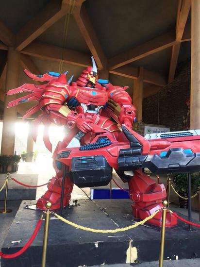 火把广场,坐落于航天城西昌的市中心,这里也是西昌彝族自治州的民族文化中心,同时也是一年一度的火把节举办地。近日,一座高达4米的红色机甲伫立在广场北门,引起路人的拍照围观。据悉,这座机甲来自于华夏乐游研发、腾讯独代的3D飞行射击手游《星河战神》,是游戏角色——火焰将军的原型。