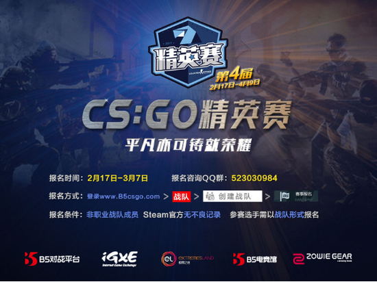 近日,第四届中国 CS:GO精英赛正式开始报名,短短四天之内已经有80多支队伍报名参赛。精英赛由B5对战平台主办、EL赛事组织承办、明基旗下电竞品牌ZOWIE GEAR赞助,将在2017年3月10日-4月9日之间举办,赛事新增的四强线下赛也将使用明基电竞显示器作为比赛用机。