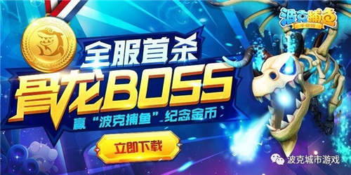 波克城市官方正版《波克捕鱼》(捕鱼达人千炮版)近日推出新版本——时光龙穴骨龙Boss,并举办了全服首杀活动,送出独家定制的总价值4.5万元的“波克捕鱼”纪念版金牌!大批鱼民闻风而动,争抢头彩,在鱼塘里掀起一片血雨腥风。最终,一支横跨海峡两岸的4人组合成功干掉骨龙Boss,完成首杀!原本预计数天才能被首杀的Boss,居然在开服几个小时后就被斩落,仅用时9分33秒!一时间让游戏内的小伙伴们目瞪口呆,要知道,这个新骨龙Boss自上线就让广大玩家伤透脑筋、闻风丧胆。