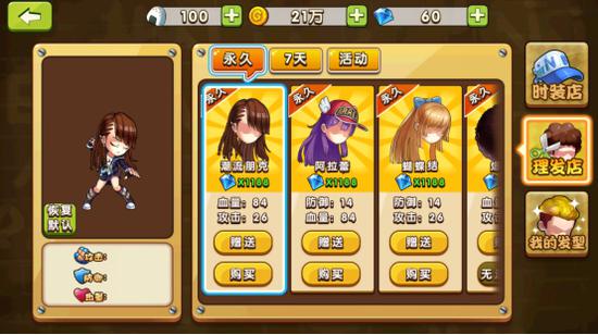 游戏中最具趣味的玩法“时装、发型”系统了,玩法可以根据自己的喜好来选择购买衣服、装饰、发型等,俗话说人靠衣装,帅一点美一点没有错哦,不管是走高冷还有逗比还是清新路线,这里的服装商城都应有尽有,花时间精心打扮一番吧!