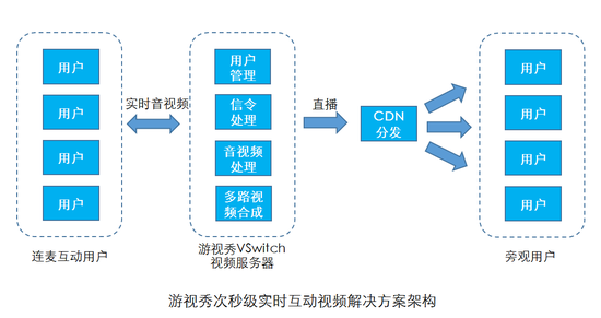 游视秀的核心成员来在华为和腾讯,在通信和互联网领域经验丰富,公司拥有业界领先的音视频编解码和网络传输技术。此次发布的次秒级实时互动视频解决方案,核心功能包括点对点视频,多人语音视频连麦,连麦画面直播。提供了时延小于300ms的多人实时互动视频能力,颠覆了传统视频直播延迟大无法实时互动的体验。