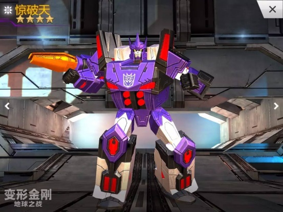 惊破天作为霸天虎的第二位首领,经过宇宙大帝改造的他威力更甚,与此同时其征服一切的野心也更大了。它的技能聚变激光,可以攻击一个远距离目标,并且目标周围的和同一直线上的建筑物都会受到损害,可谓是DPS超强的新角色。
