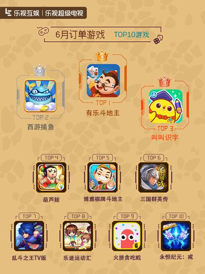 6月付费订单量TOP10:棋牌休闲类游戏依旧拉动榜单