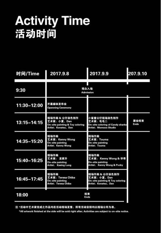 9月8日及9日下午有不可错过的艺术家现场绘画及公仔涂绘活动,届时大家可以前去观看。