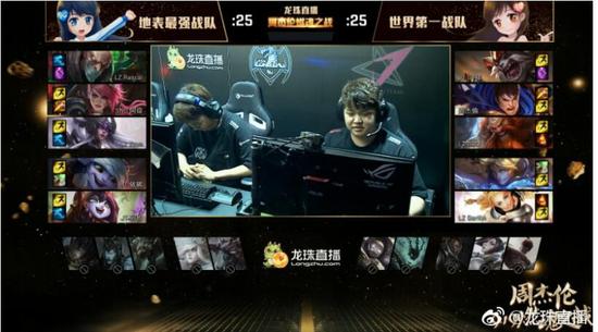 9月19日下午14:00,周杰伦携J TEAM与龙珠战队以及苏宁战队,共同上演一场精彩的燃魂之战。最终“地表最强”战队与“世界第一”战队以1比1的成绩握手言和,而周杰伦的表现可圈可点,并不输于职业选手。
