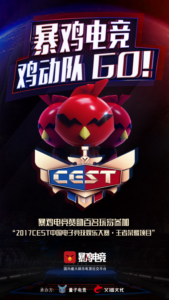 在覆盖范围最广,参与人数最多的全国性电竞赛事之一——王者荣耀城市赛(KOC)上,出现了由路人大神组成的60多支战队,他们全部由娱乐电竞社交APP“暴鸡电竞”赞助,为实现自己的职业电竞梦想进发。现在,暴鸡电竞希望帮助更多电竞爱好者实现自己的梦想,再一次赞助路人玩家参加官方电竞赛事,而这一次的赛场是中国电子竞技娱乐大赛(CEST)。