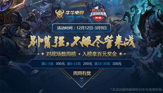 同时,本次线上赛属于第六届《英雄联盟》全国高校联赛的外卡赛区,除了由牛牛电竞平台自身提供的高额名次排名奖励和每日每周每月众多奖励之外,获得线上赛总决赛资格的两支队伍还能直通LCL全国总决赛31强,继续争夺LCL最后的荣誉和大奖!