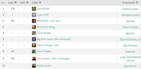 MEA地区中的主要游戏市场是土耳其,沙特阿拉伯,伊朗,阿拉伯联合酋国和埃及等国家,在这些国家及地区中策略类游戏颇受欢迎。在Think Gaming 12月19日的沙特阿拉伯iPhone游戏畅销排行榜中,龙腾简合手中策略类游戏《苏丹的复仇》与《国王的崛起》分列第一与第四名。