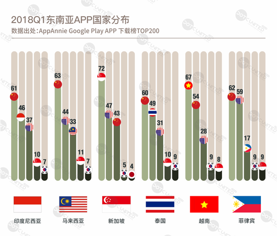 一直以来,东南亚凭借庞大的人口基数及新兴市场的先天优势备受瞩目。作为一个移动先行、手机优先的区域,东南亚移动应用市场竞争激烈,前景广阔。同时由于受多元文化的影响,东南亚各市场也存在一定差异性,新加坡移动应用市场目前处于成熟阶段,印尼、泰国、菲律宾则在迅猛增长,而马来西亚、越南则处于初始萌芽阶段,潜力巨大。