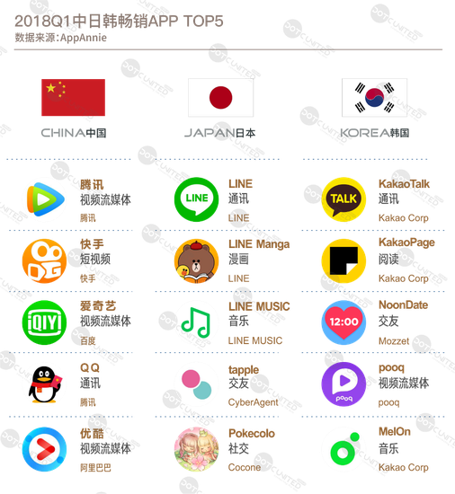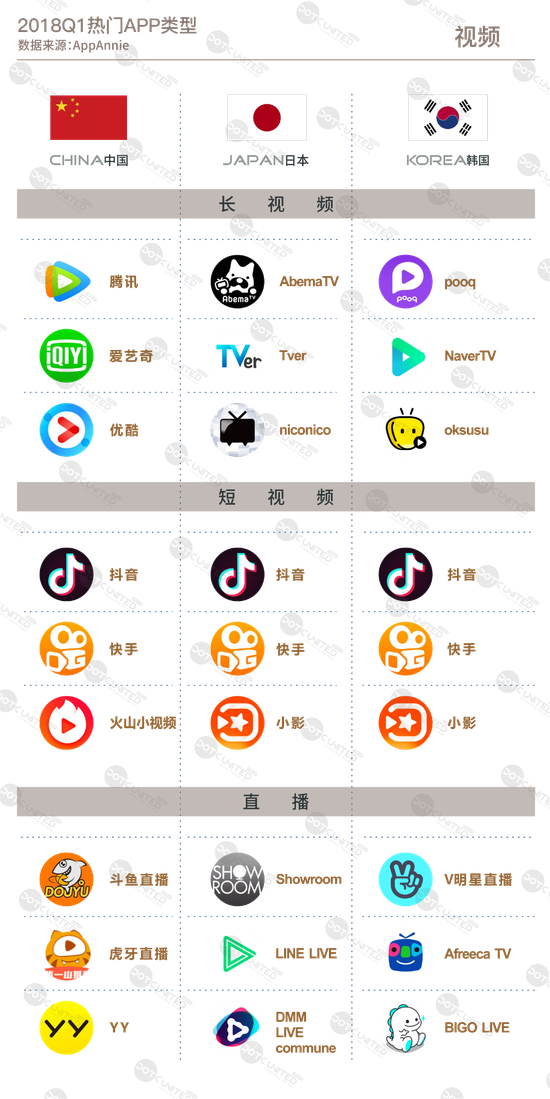 中国短视频APP除在本土外,在海外尤其是邻国日本、韩国同样备受追捧,受欢迎程度甚至超过其本土同类产品,过去一年中,快手、抖音、小影都是日韩APP免费榜单前列的常客,2018年第一季度,短视频热度不灭,这些APP在日韩市场的表现或依旧坚挺。