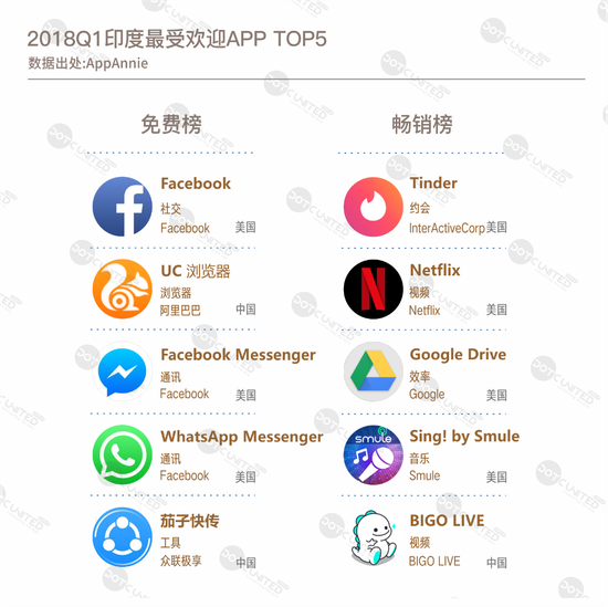 印度用户偏好社交产品 美国中国APP霸占头部榜单