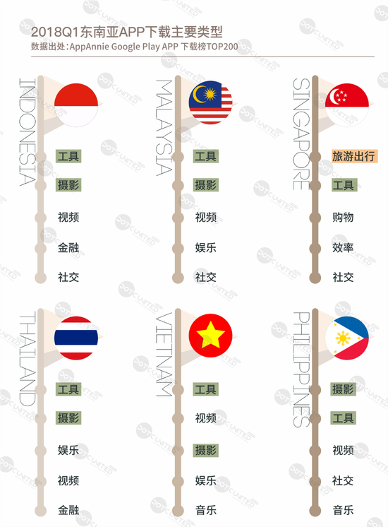 工具&摄影类主导东南亚APP市场 新加坡旅游出行APP独占鳌头
