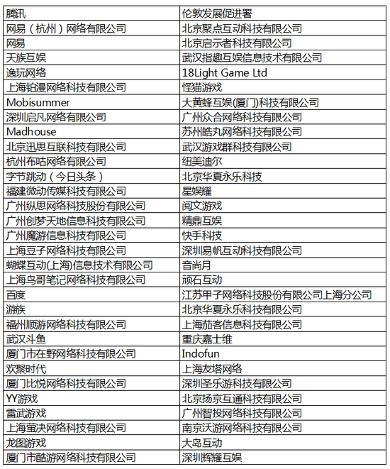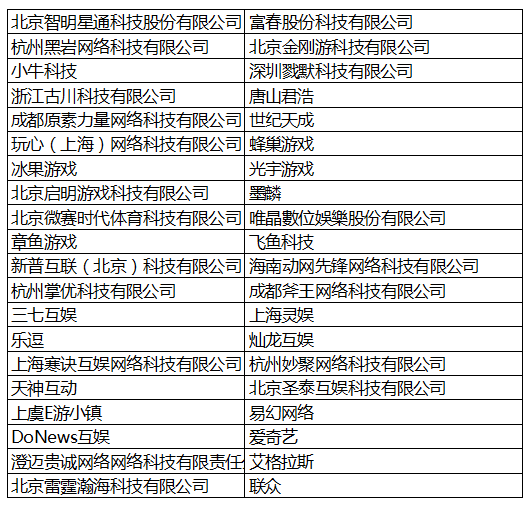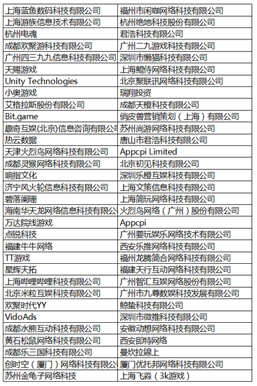官方一对一内容商务洽谈名单(含中国台湾厂商)