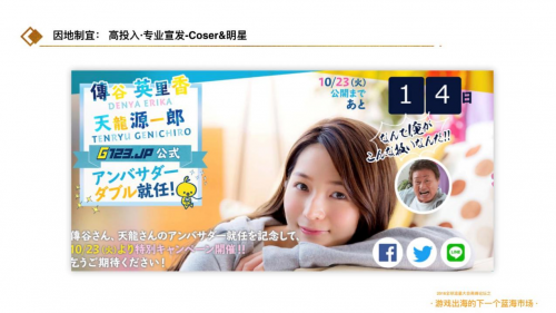 其次,就是在用户运营上,白鹭科技通过联合G123(日本游戏社区)做深度的用户运营。在G123上搭建攻略专区并对新产品进行预热,再通过运营官方YouTube、Twitter、LINE等社交媒体账号来解决推广难、留存低的问题。通过完整的PR计划和广告投放最终达到搭建游戏平台的目标。搭建的平台最终拥有稳定的用户,并且黏度高、付费意愿强。