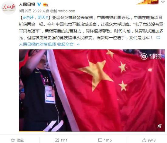 对于今年中国电子竞技产业所作出的成绩,国内主流媒体也给予了充分的肯定与支持。央视、人民日报等主流媒体在今年多次为电竞发声,向公众传达中国电子竞技展业蓬勃发展的态势与积极向上的正能量。