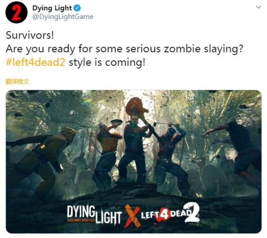 《消逝的光芒》官推宣布,很快将与V社的《求生之路2》开启联动,官方表示:“幸存者们!准备好去杀僵尸了吗?《求生之路2》的游戏风格来了!”