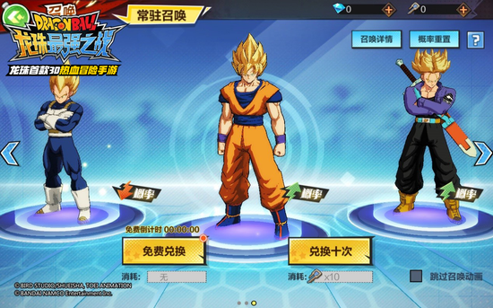 龙珠世界中大量的经典角色孙悟空、龟仙人、贝吉塔等也被植入到游戏中,除了在游戏剧情中出现外,还可以通过召唤方式获取,培养专属的龙珠战士。
