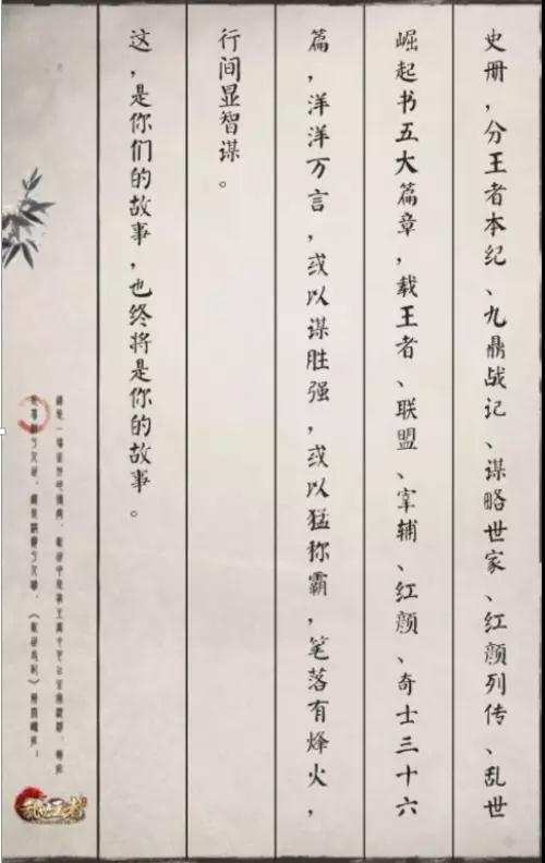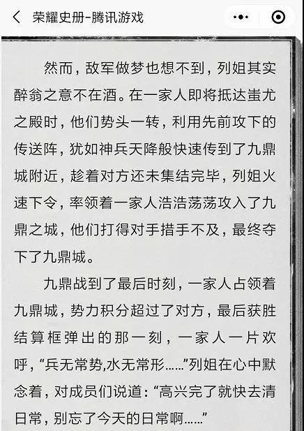 游戏更迭,历史演变,玩家故事文创同样不落分毫。在今年,顺利升级成为《荣耀史册》。乱世为崛起而战,荣耀为登顶而行,故事在自我完成一种演变。“列传篇”、“世家篇”、“本纪篇”三个极具史诗韵味的篇章成为抒写玩家故事的新方式。