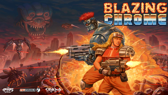 2019年7月,由中电博亚与法国The Arcade Crew联合发行的横板动作游戏《炽热合金》登陆Steam,同样获得了93%“特别好评”的总体评价。尽管《炽热合金》是一款老派的16Bit横板游戏,但是其出色的艺术风格和游戏手感以及超高的完成度给热爱这一类型的老玩家们带来了近乎满分的游戏体验。游戏不单有魂斗罗式的横板战斗,还有丰富的载具战和第三人称视角的射击关卡,玩家能够获得的武器和道具也多种多样,为本身体量有限的游戏提供了极高的重复可玩度。总之,用知名独立游戏评测玩家“药荚”的话来说“玩起来的感觉很对路子”。