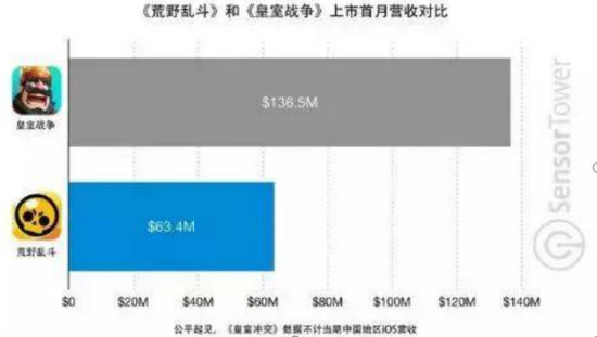 本作是Supercell制作的第五款游戏,此前已在2018年12月在全球多个地区上市。熟悉Supercell的玩家应该知道,这家芬兰游戏厂商曾开发的《部落冲突》和《皇室战争》等多款手游都是全球知名的手游大作。而《荒野乱斗》在国外的口碑也非常不错,而这款俯视角射击型MOBA游戏在数个国家地区的服务器上排名免费游戏榜前三。据权威机构数据统计,该作上线首月便在苹果商店和谷歌商店收入超6300万美元。