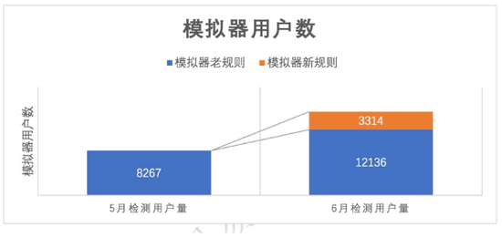 模拟器不断升级:游戏中使用模拟器拥有更大的作弊空间,因此模拟器在作弊玩家中盛行,而模拟器开发者也会配合玩家不断修复各游戏闪退Bug,也就是绕过模拟器验证。网易易盾一直致力于新型模拟器检测方法的研究,于2019年5月上线了模拟器进阶版的检测方法。应用后,以一款沙盒游戏为例,仅一个月检测到的模拟器增量就达到46%。