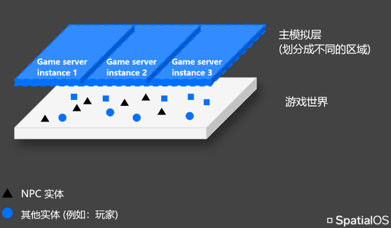 思礴(SpatialOS)AI负载拆分技术图解对于在线游戏来说,玩家能够体验到的内容量不仅取决于地图的大小,而是游戏大世界之内的互动内容和方式。AI负载拆分技术可以允许某个玩法系统被不同的后端服务进程来模拟(模拟层),由于思礴(SpatialOS)允许线性的添加服务进程数量,可以通过添加更多的层来增加更多游戏内容。