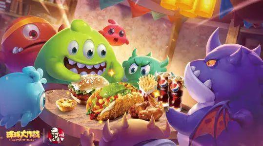 2018年,《球球大作战》IP之路再下一城,携手快餐巨头肯德基。玩家们熟悉的《球球大作战》角色开始出现在全国2690家肯德基门店里,用户不仅可以和窗贴、桌子、墙贴和收银机上的角色合影,还可以购买球球大作战塔可餐,兑换抽取海量定制游戏道具。