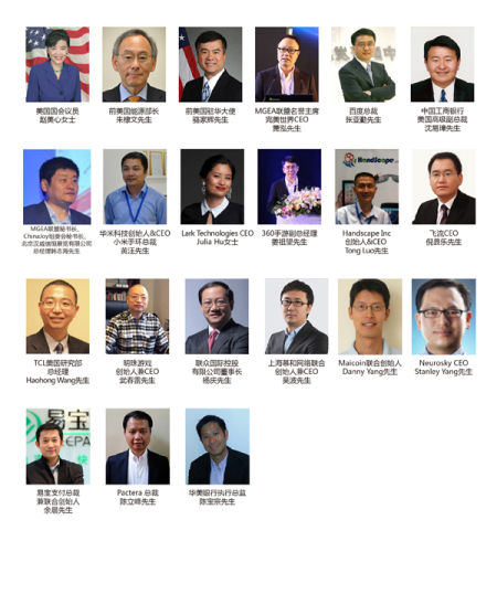 MGEA联盟在今年的ChinaJoy期间正式与美国硅谷最具影响力和知名度的国际性互联网盛会 - 硅谷高创会主办方建立了战略合作伙伴关系并首次参与了2014年硅谷高创会的组织筹备工作,同时牵头负责了首届中美移动游戏产业峰会的策划和运营工作以及中美移动游戏产业的投资和项目对接活动,并与高创会主办方安排了美国西海岸名企考察和丰富的商务社交活动。凭借ChinaJoy这个中国本土12年的国际品牌在美国的良好知名度,MGEA此次的北美商务之旅得到了众多主流媒体和商业名企的高度关注,尤其是移动互联网和游戏领域驻美华人华侨。MGEA联盟也希望通过这些旅美华人华侨的帮助全面促进中美两国在移动游戏领域的国际合作,MGEA联盟此次出访由MGEA名誉主席完美世界CEO萧泓先生和MGEA秘书长韩志海先生率领以及中国移动游戏领域的代表性企业高管一行30人前往美国硅谷,在美期间计划与包括美国国会议员、前能源部部长、前美国驻华大使、中国驻美使领馆负责人、驻美华人机构和社团组织的领导人会面,规格之高在移动游戏业界的国际性交流活动者还是首次。目前,已经确认出席本届硅谷高创会的全球华人华裔的优秀代表名单已经出炉: