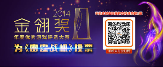 由ChinaJoy组委会主办的2014年度优秀游戏评选大赛--金翎奖已经拉开帷幕,投票通道已经正式开启。国内知名手游《雷霆战机》将有幸参加这被誉为“游戏界奥斯卡”的年度盛会,角逐“玩家最喜爱的移动网络游戏”大奖。