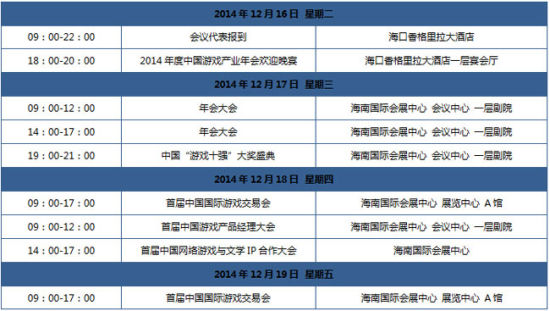 游戏产业年会日程安排