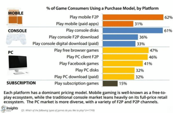 据悉,目前游戏机平台的营收约占游戏市场总营收的50%,PC端次之,其中来自“免费-付费”类的内置付费游戏则贡献了约15%的收入。与此同时,调查人员还发现,能接受移动内置付费游戏的消费者人数,几乎和PC端的持平,唯一不同的是,在PC端消费者只认准大型游戏的此类模式,诸如《英雄联盟》或是《反恐精英》,而对于移动端,消费者们的要求却明显放宽,更多小制作的游戏内容也被纳入进来。