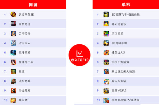 收入TOP榜:《天龙八部3D》卫冕,《全民奇迹》爆发