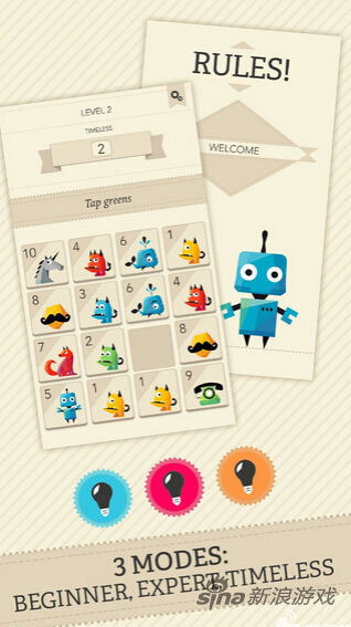 资料显示,《Rules!》是一款简单的消除类智力游戏,消除为主要游戏手段,玩家们要在不可逆转的时间内根据每一回合游戏的要求,将出现在游戏屏幕上的4*4方格内的方块逐一消除,并且每一游戏回合所消耗的时间都有所限制。所以虽然看上去虽然简单容易上手,复杂多变的规则设定,也足够让无数玩家对着迷你屏幕玩上半天了。