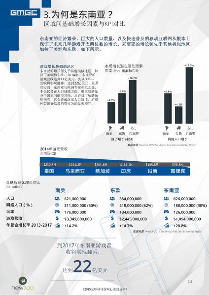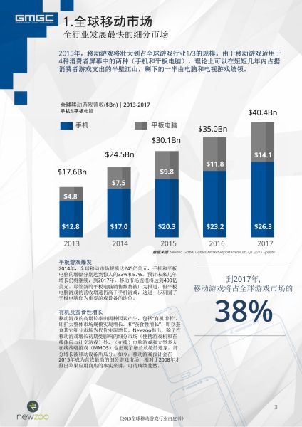 全球移动游戏联盟(GMGC)及行业领先的市场调研公司Newzoo非常荣幸的发布了《2015全球移动游戏白皮书》。白皮书中提到,中国和东南亚市场拥有全球最强劲的增长和潜力。以下为白皮书全文。