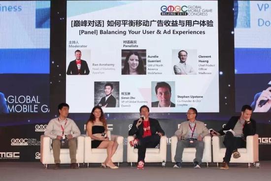 来自AppsFlyer的市场负责人Ran Avrahamy, MobPartner北美GM Aurelie Guerrieri, Madhouse CPO Clement Huang、多盟国际业务部副总祝玉琳、LoopMe联合创始人兼CEO Stephen Upstone进行了一场《如何平衡移动广告收益与用户体验》的巅峰对话。