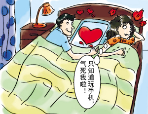 过度使用移动电子产品已经影响夫妻关系、亲子关系和个人健康。日前,全国妇联等发布调查报告显示,晚上玩移动电子产品的频率越高,婚姻满意度就越低,因此全国妇联呼吁每天关机一小时,多与家人相处。