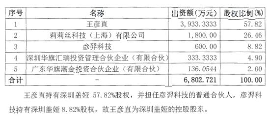 另外,公告书中还揭示了深圳盖娅的股份结构及王彦直个人投资控股公司情况,如下: