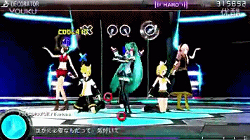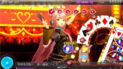 《初音未来歌姬计划》:垂直/一维音乐游戏。垂直,游戏的NOTE采用飞入试,展示方式在平面内,但每个NOTE从出现到击打,有一个明显的轨迹,无论从上至下或从左至右,NOTE都程掉落趋势,顾为垂直类;一维,单位时间内只有一个NOTE,如果将每个NOTE的轨迹链接起来的话,其实就是一整个通道,虽然NOTE分布在屏幕的随机处,但玩家只需要理解单个NOTE通道就可以了。