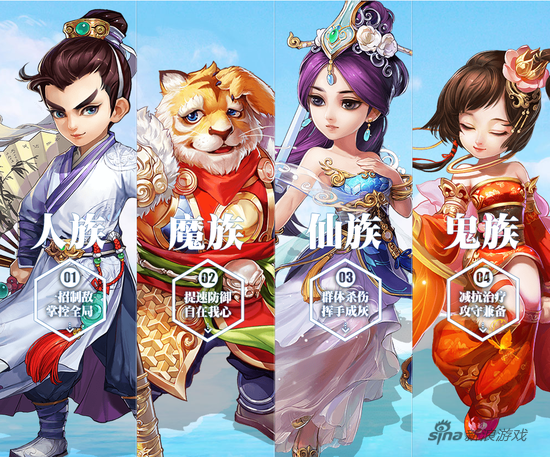 《大话西游手游》目前有4个种族,8个主角,各分男女。而端游中是36个主角,相信随着游戏的不断开放,将会陆续推出新的角色。