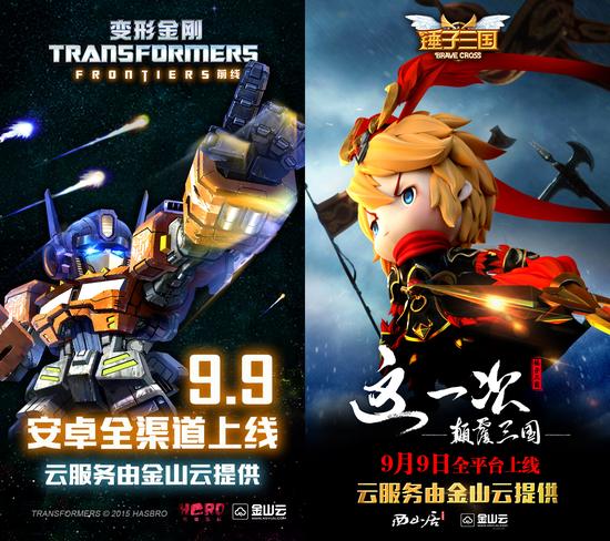 9月9日,两款重量级IP大作不约而同地选择在同一天入市。国内老牌游戏厂商西山居推出“RPG养成+塔防横版策略”新作《锤子三国》;而另一款大作则是国内80后、90后粉丝翘首以待的ATB动作卡牌游戏《变形金刚前线》,由孩之宝官方授权,英雄互娱代理安卓渠道发行。两部作品都堪称近期良心大作,无论画面等级、制作水准、设定类型都获得高分评价。两款游戏虽是中西文化的代表之作,但它们同样非常默契地选择了金山云旗下游戏云服务作为运营的基础保障。