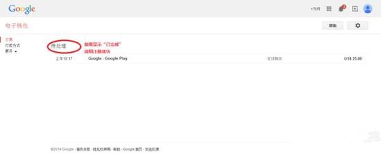 5、检查Google Wallet中该笔订单支付状态,登入https://wallet.google.com/,如显示“已完成”说明Google Play开发者账号(中国地区)申请成功。