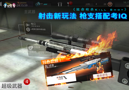 此外《致命枪杀Kill Shot》还添加了养成元素,即通过对枪支的改造来打造专属枪:根据每把枪械的特色,可通过对弹药、枪管、枪口、瞄准镜、枪托等部件的改造,令火力瞬间爆表。而改造部件除了对火力起到数值上提升外,还会令枪支进化出更加炫酷的造型!