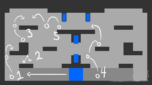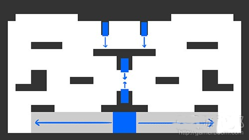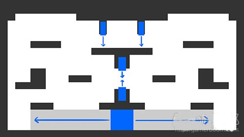 接下来让我们说说这个关卡本身。为了有效利用这一机制,我们需要使用一种有利的方式。于是我们便想出一些这样的布局。