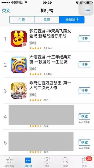 12月4日消息,早上习惯性的浏览朋友圈,发现又被网易游戏刷屏了。《梦幻西游手游》、《大话西游手游》和《乖离性百万亚瑟王》已称霸App Store畅销榜前三位。对于这样的成绩,圈内人表示祝贺的同时也在纷纷猜测什么时候会出现"四连霸"。