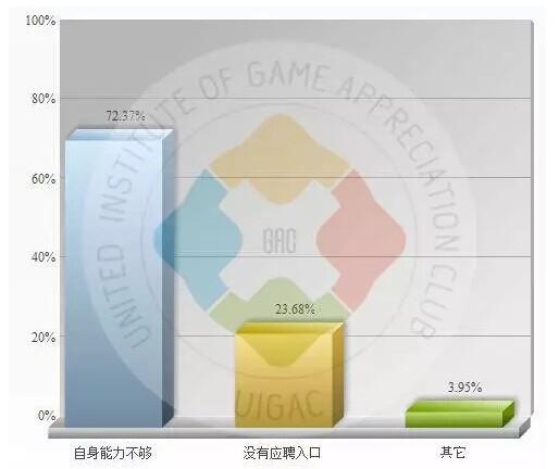 毕业后倾向于从事的游戏行业职业分布对于进入游戏公司,学生中有70%以上认为自身能力是根本阻碍,20%以上的学生没有发现合适的应聘入口,这部分学生表示希望游戏行业能够让广大行业爱好者有一个更公开透明的了解渠道。